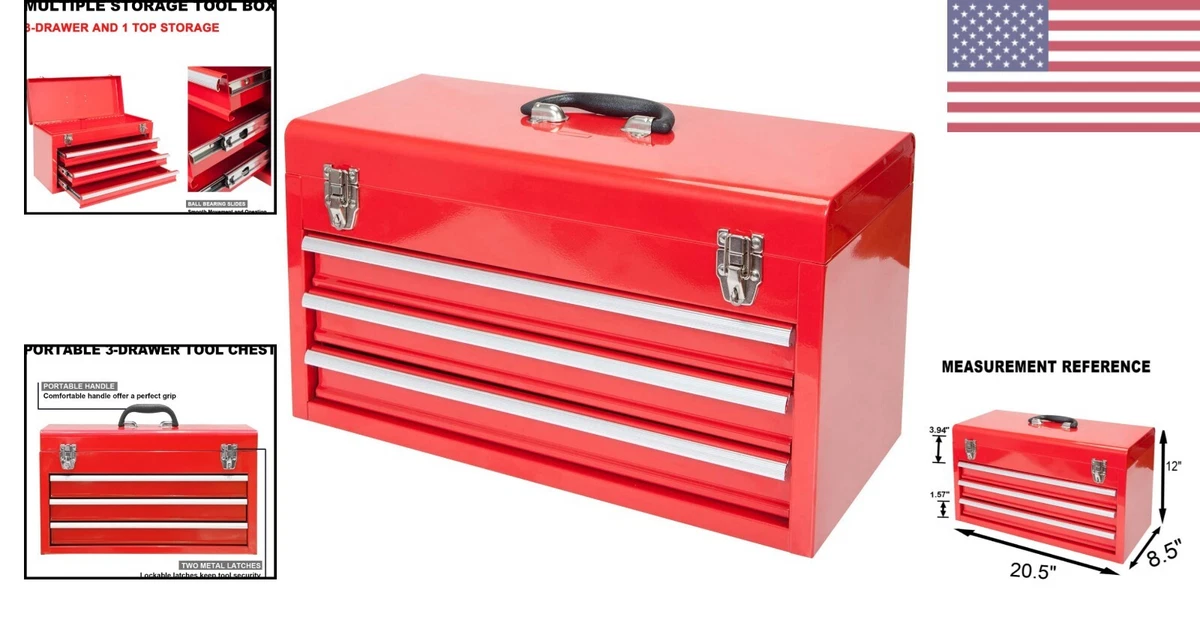 Big Red 3 Drawer 20 Metal Tool Box Portable Steel Tool Chest With Ball Bearing Slides And 2 Metal Latches Closure For Garage Home Or Workbench Blue Antbd133 Xu Amazon Co Uk Diy Tools